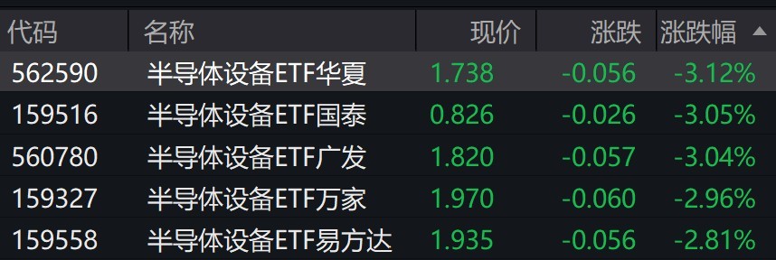 半導體設備概念股走弱,北方華創、拓荊科技、長川科技、中科飛測、安集科技、芯源微跌超3%。