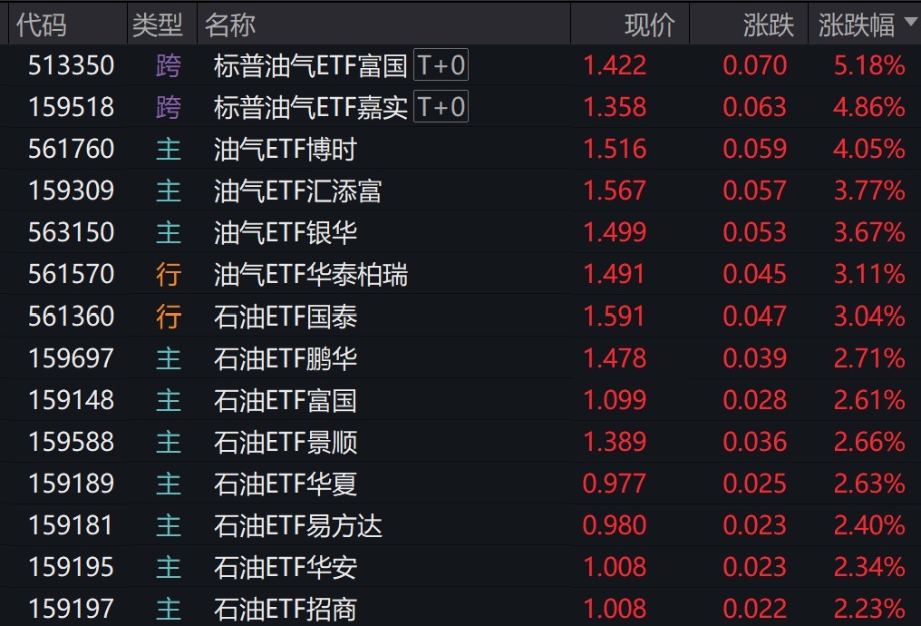 受盤面影響,油氣相關ETF漲超3%,石油相關ETF漲超2%。