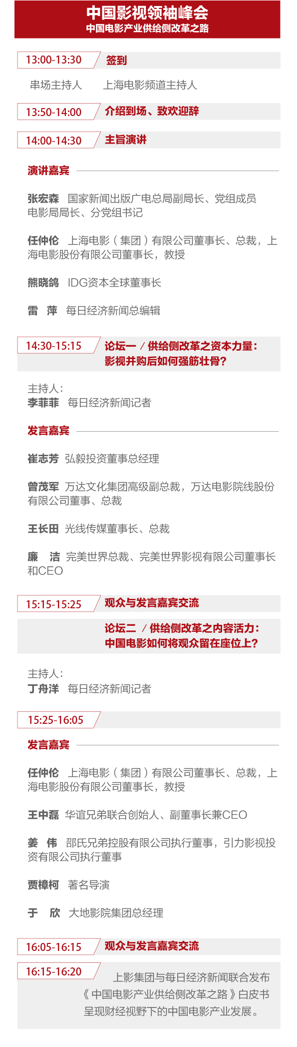 為了共同探討中國電影發展大計,減緩國內優質電影供給不足和人民對電影文化消費需求持續增長的矛盾,張宏森、任仲倫、熊曉鴿、雷萍、王中磊、曾茂軍、王長田、廉潔、崔志芳、姜偉和賈樟柯等,方向掌舵者、龍頭企業和公司、行業精英……將濟濟一堂,傳遞政策導向、引領投資風向、把脈創作方向……