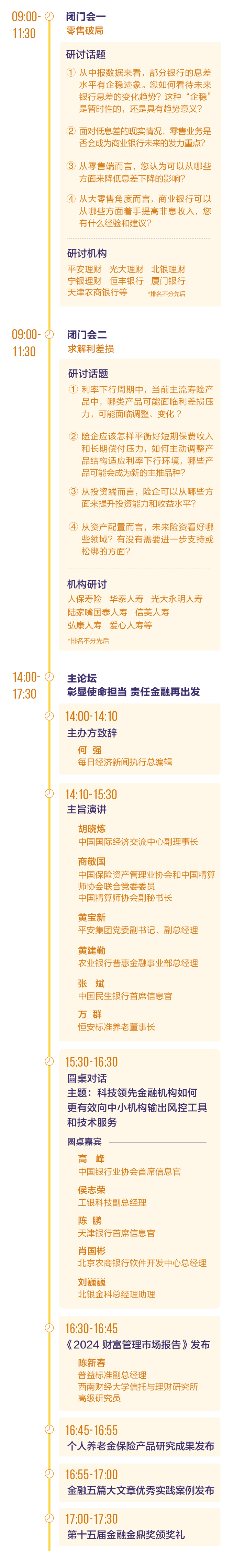 金融發展年會作為每日經濟新聞年度重磅行業活動之一已成功舉辦14屆。2024第十五屆金融發展年會將于11月19日在北京舉行,以“彰顯使命擔當 責任金融再出發”為主題,邀請行業協會、機構代表、專家學者等重磅嘉賓參與,通過“金融+社會”的雙重視角,圍繞金融機構踐行“五篇大文章”,深刻探討如何打造產融生態圈和社會責任共同體,實現可持續的中國特色金融發展之路。會上將同步揭曉第十五屆金融金鼎獎,敬請關注。