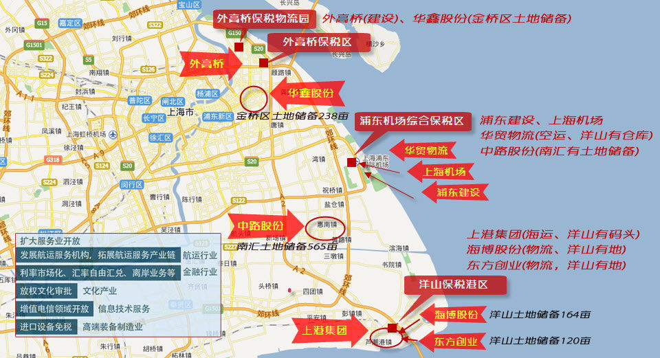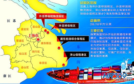 位于上海東部的洋山保稅港區、外高橋保稅區和浦東機場綜合保稅區,面積28平方公里,相當于上海市面積的1/226。